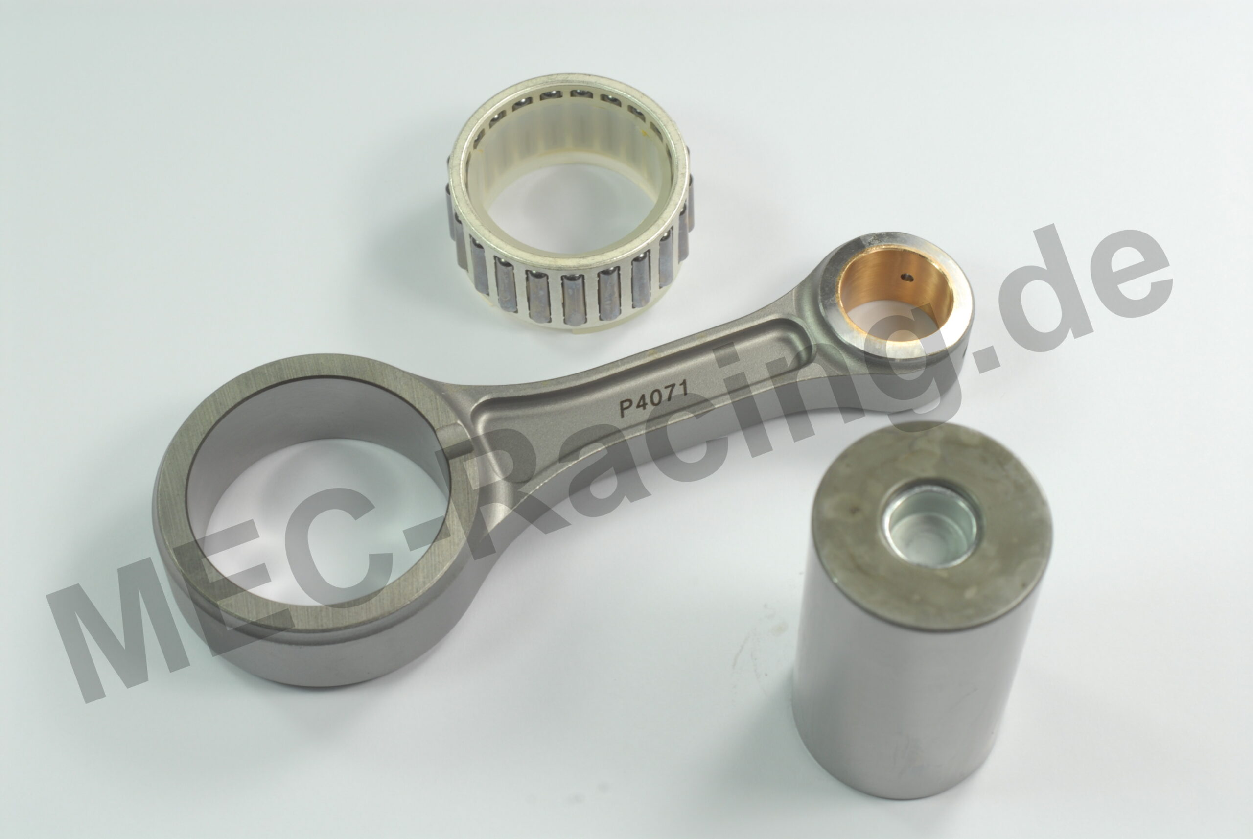 Bei diversen 4-Takt Pleuelkits verbaut Wössner im oberen Pleuelauge eine Bronzebuchse zum besseren und verschleißärmeren Laufbetrieb des Kolbenbolzens.